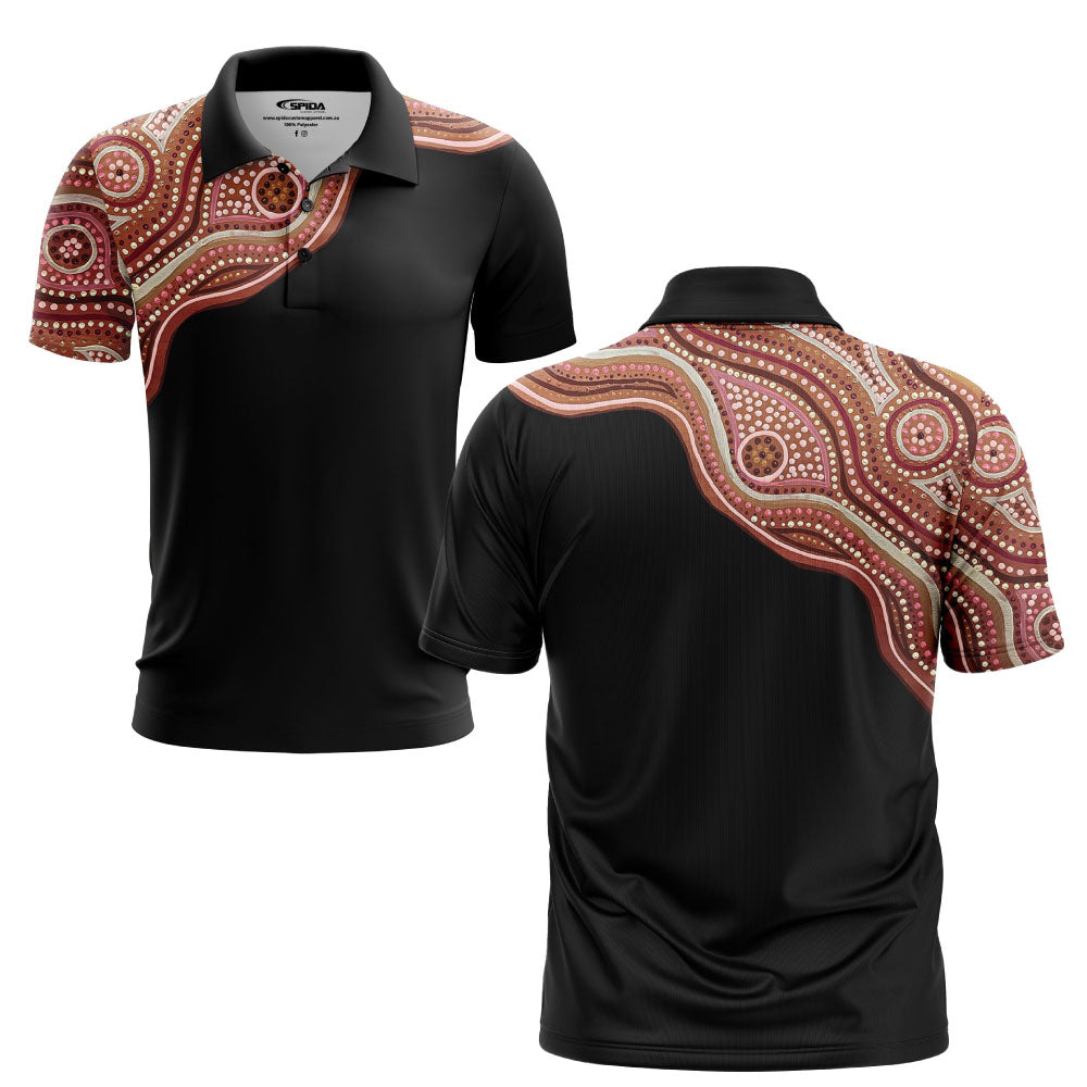 Rosie made collection of stunning Aboriginal polos featuring the artwork by artist Rosie Paine.