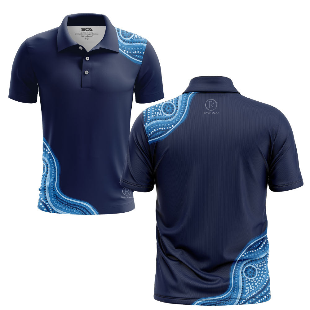Rosie made collection of stunning Aboriginal polos featuring the artwork by artist Rosie Paine.