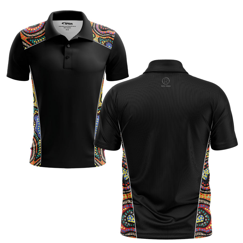 Rosie made collection of stunning Aboriginal polos featuring the artwork by artist Rosie Paine.